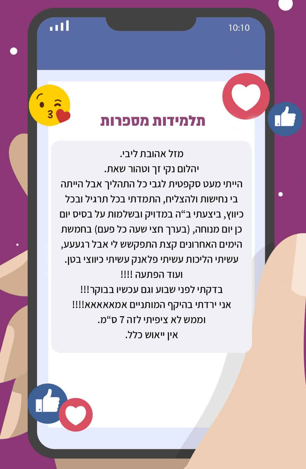 וזה הוכיח את עצמו פעם שנייה, בהמשך אראה לך תלמידות נוספות שזה עבד עליהן גם).