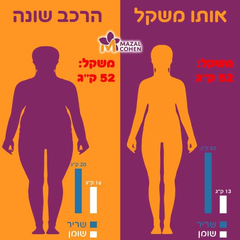 לבין גוף ששוקל 60 קילו ששהרכב הגוף הוא רובו שומן'