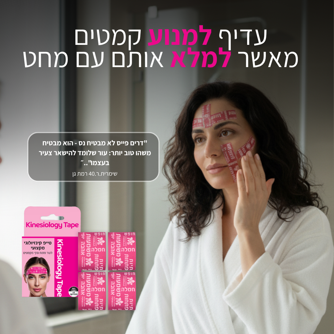 אם את חווה קמטים במצח או בשאר הפנים – המדבקות מרגיעות את השרירים, מייצבות את העור במצב "חלק", ונותנות לו הזדמנות להתחדש בלילה.